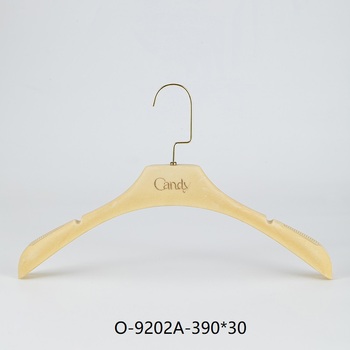 Perchas de ropa de alcanfor de madera maciza antideslizantes personalizadas para el hogar, brazaletes de plástico sin costuras para tienda de madera con hombro ancho Natural